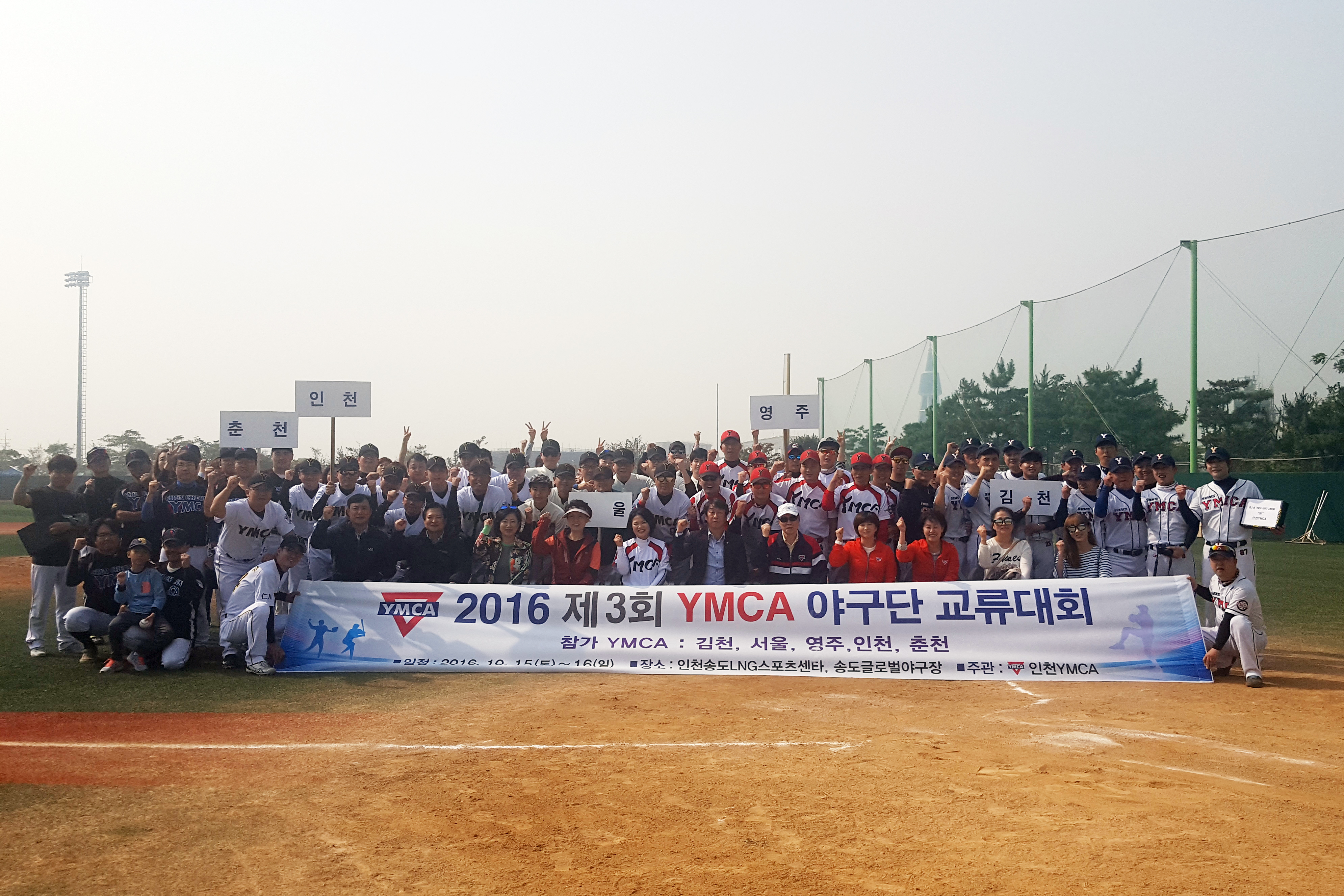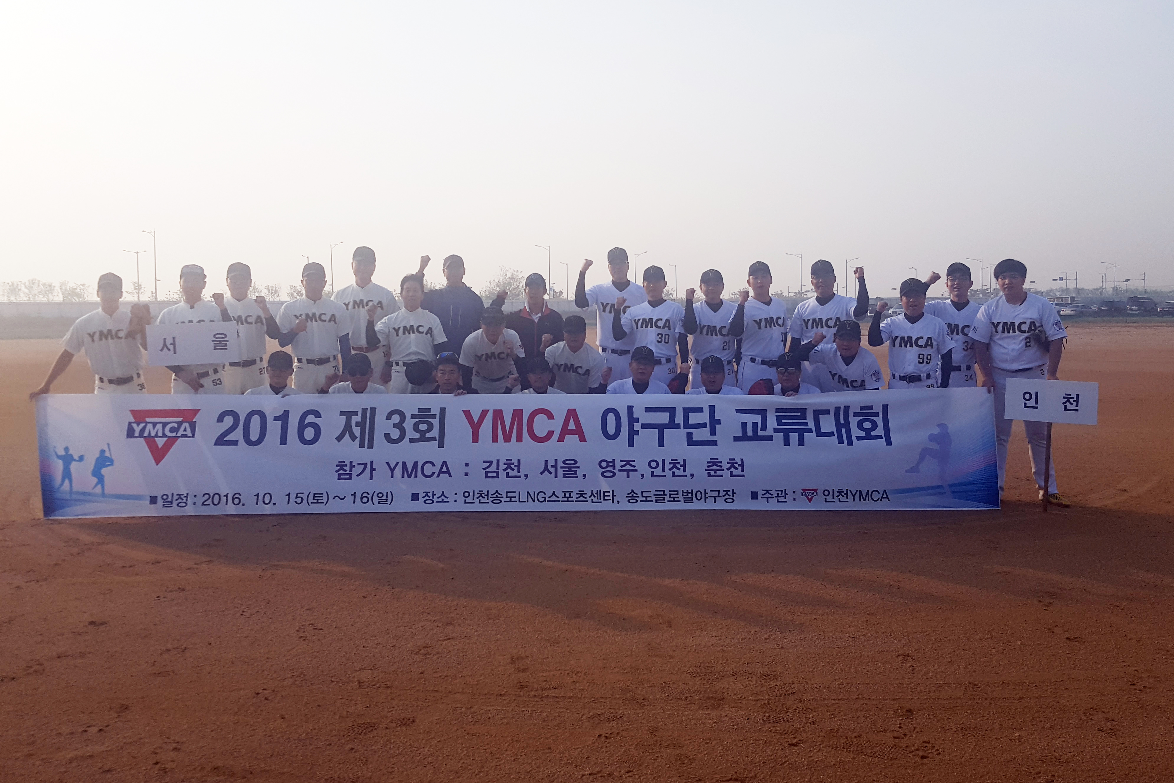 인천YMCA는 김천,서울,영주,인천,춘천 등 5개 지역YMCA 야구단이 참가한 가운데 10월 15일, 16일 양일간 인천송도LNG스포츠타운 야구장에서 제3회 YMCA야구단 교류대회를 주관하였습니다. 다섯팀이 풀리그로 진행된 이번 대회에서는 전승을 거둔 김천YMCA야구단이 우승, 3승1패를 거둔 영주YMCA야구단이 준우승의 성적을 거두었습니다.