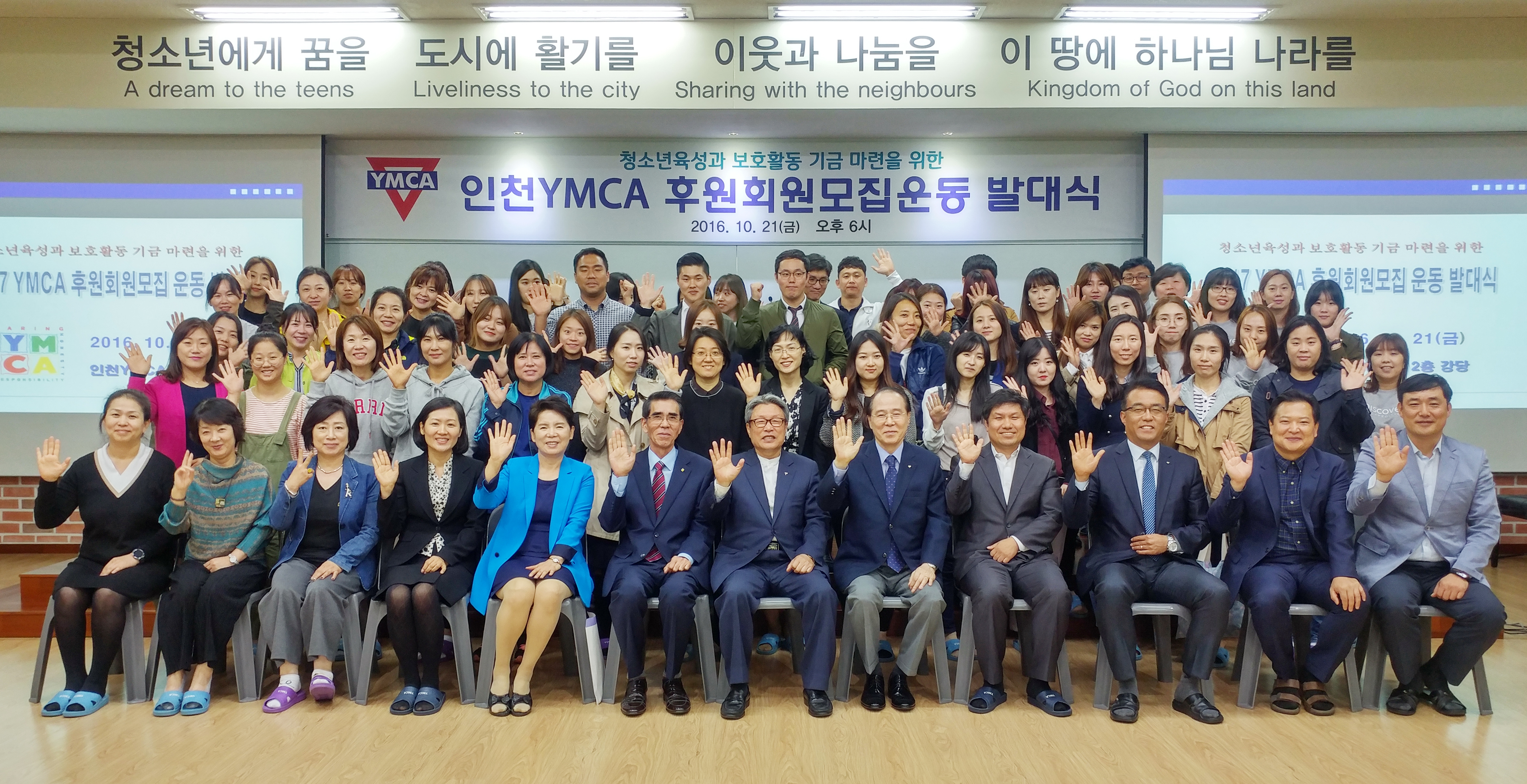 인천YMCA 후원회원모집운동 발대식이 10월 21일(금) 오후 6시 회관 강당에서 김권중 이사장, 이창운 회장, 송광식 와이즈멘인천지구총재 를 바롯한 회원 100여명이 참석한 가운데 개최되었습니다.