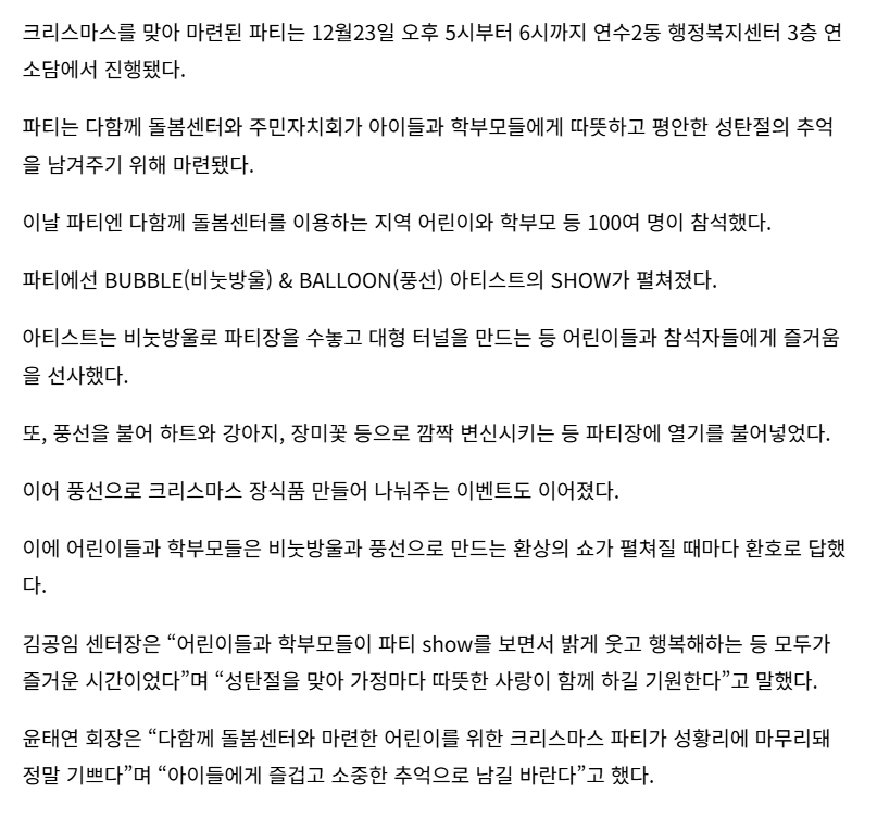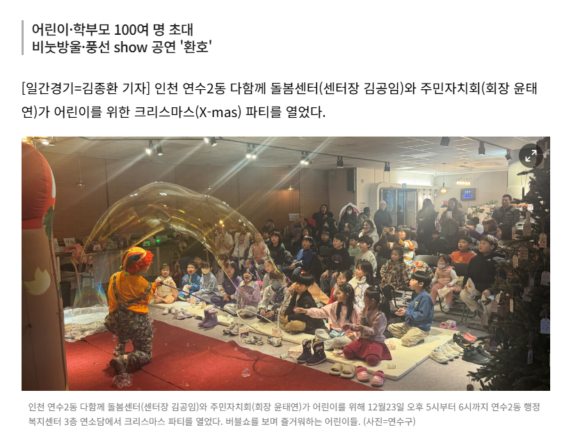 연수2동 다함께돌봄센터·주민자치회 크리스마스 파티 열어