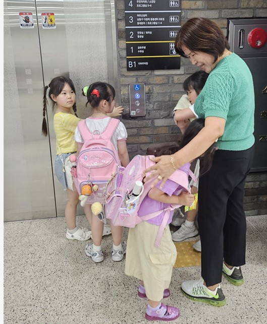 다함께돌봄센터는 학교 긑나고 센터로 오는 아이들의 안전한 귀가를 위하여 매일 시니어 선생님들께서 수고해 주십니다.