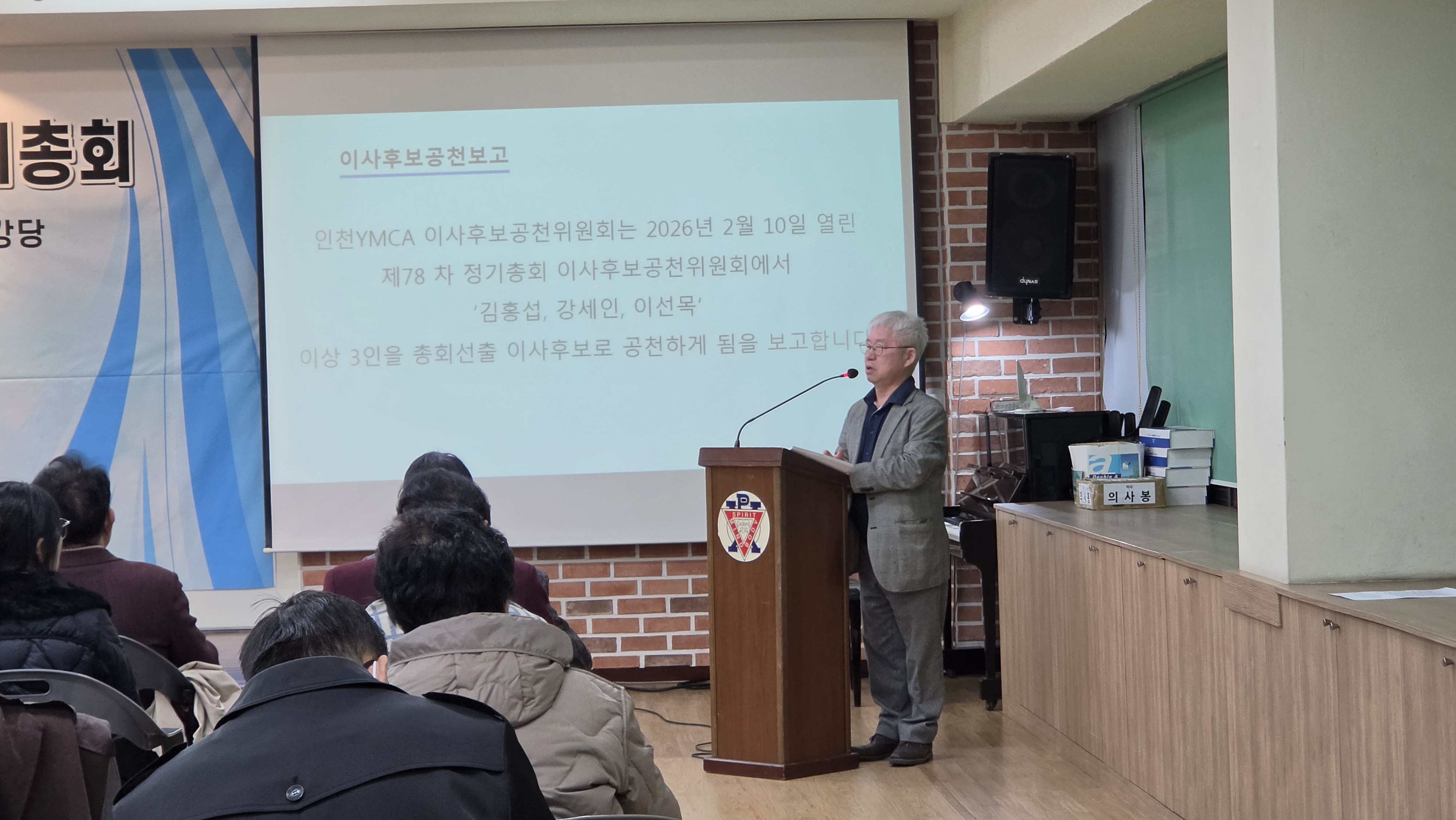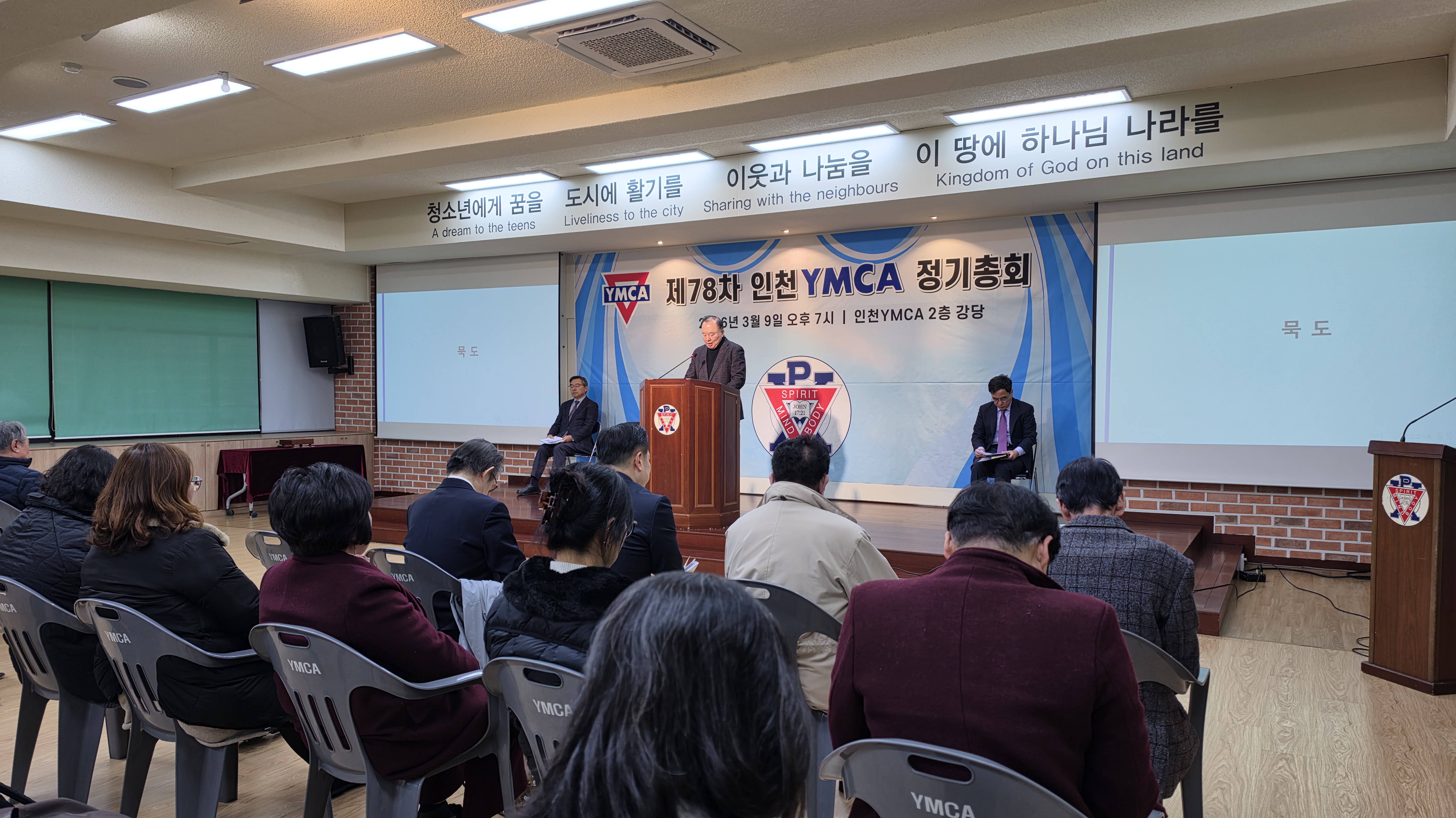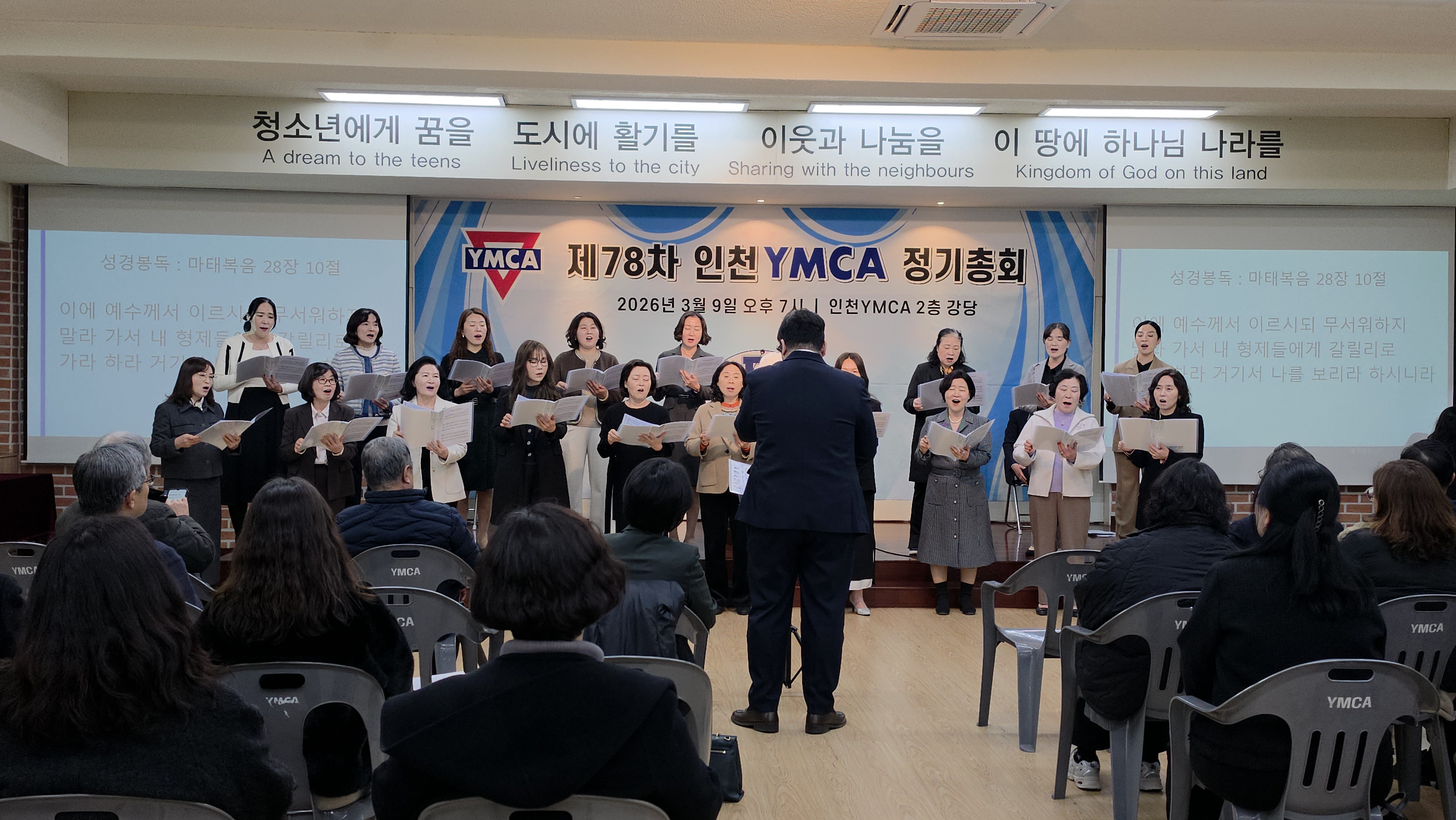 인천YMCA 제78차 정기총회 개최 "새로운 도약을 향한 화합의 장"인천YMCA는 지난 2026년 3월 9일(월) 오후 7시, 인천YMCA 회관 2층 강당에서 회원 및 관계자 70여 명이 참석한 가운데 ‘제78차 정기총회’를 성황리에 개최하였습니다. 1부 예배에서는 박홍준 부이사장의 사회로 진행되었으며, 이갑현 이사의 기도, 인천YMCA 여성합창단의 찬양과 마포중앙교회 김영민 목사님의 ‘우문현답’이라는 주제로 귀한 말씀을 전해주셨습니다. 참석자들은 설교를 통해 YMCA의 사명과 나아가야 할 방향을 깊이 되새기며, 지역사회를 위한 봉사와 헌신의 의지를 다지는 은혜로운 시간을 가졌습니다. 이어진 2부 본회의는 김홍섭 이사장의 주재 아래 질서 정연하게 진행되었습니다. 먼저 조성일 회장이 2025년도 주요 사업 성과와 결산 내용을 보고하였으며, 이어지는 2026년도 사업 계획 및 예산안 발표를 통해 올 한 해 인천YMCA가 추진할 핵심 과제들을 공유하였습니다. 특히 이번 총회에서는 조직의 내실을 기하고 변화하는 시대에 발맞추기 위한 헌장(정관) 일부 수정안이 회원들의 뜻을 모아 통과되었습니다. 이사후보 공천위원회에서 추천한 김홍섭, 강세인, 이선목 이사의 3년 연임안이 가결되었습니다. 앞으로도 세 분의 이사님들은 풍부한 경험과 리더십을 바탕으로 인천YMCA의 발전을 위해 힘써주실 예정입니다. 늦은 시간까지 자리를 지키며 인천YMCA의 앞날을 위해 소중한 의견을 보태주신 모든 회원분께 깊은 감사를 드립니다. 2026년에도 우리 인천YMCA는 지역사회와 청소년을 위해 깨어 있는 조직으로 최선을 다하겠습니다. |